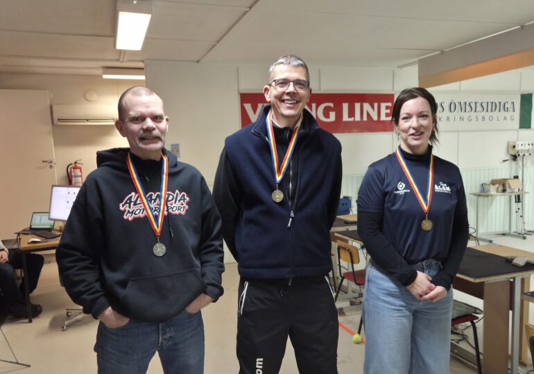 Fredrik Blomqvist lade en ny mästartitel och guldmedalj till sin stora samling när luftpistolens åländska mästerskap i klass A avgjordes på lördagsförmiddagen. På en totalpoäng om 224,1 mot silvermedaljören Stellan Egelands 218,4 höll han undan hela vägen. Cecilia Lund knep bronset på 195,5p. Det stora poängskillnaderna beror på att tävlingen sker genom utslagning efter varje 2 skott efter det första 10 skotten skjutits. 6st skyttar kom till final.